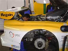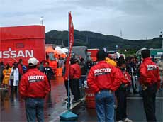 パドック到着後、しとしと降る雨のなか無限×童夢のパドックを探し、雨宿りです。一応”お客様”という立場のようですが、もう臨時社員と思われてもいいくらいの関係です。