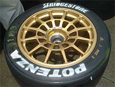 [中]:無限の本田博俊社長の案でホイールは前後で色分けしています。ホントは4輪とも分けたかったらしいぞ