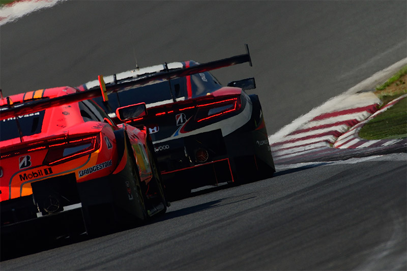 ◇ちょと上から撮影。コース看板が排熱のかげろうに揺れているのが好き。金網にへばりついてコースポストの切れ目から狙うのが良し。テールライトの意匠はNSXが一番だね。