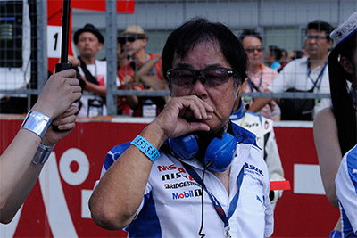 ◇逆に緊張しているように見える闘魂星野監督。カルソニックカンセイが売却されてこれからレース活動はどうなっていくのだろう?