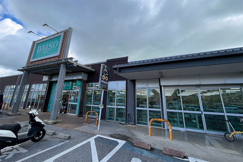 空港から自転車に乗る人なんていなさそう、というか実際歩いている人自転車の人なんて誰もいない。空港を出てまずは南下、すこーし繁華街みたいなエリアに入りとても小振りなモール的なところに来てダイソーを探した。なぜかといえば自転車に着ける「鍵」を持ってくるの忘れた。しかし宮古島はいい人ばかりなので、鍵なんて必要ないかもしれないが、旅行者がみんないい人とは限らないし。
