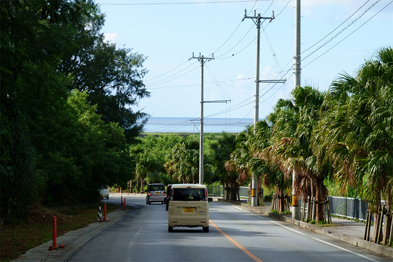宮古島の地理は事前に学習していたこともあって、結構つかめている。どっちの方向がどんな道路でどこを曲がればいいか…。しかし実際にその場に行くと想像していたのとは違って、またそれが楽しい。ストリートビューで見ていても、景観はなんとなくわかるが、その先に広がる空気感とか距離感は行ってみて初めて感じられるのである。目指す宿までは18キロ弱。別段どってことない距離である。