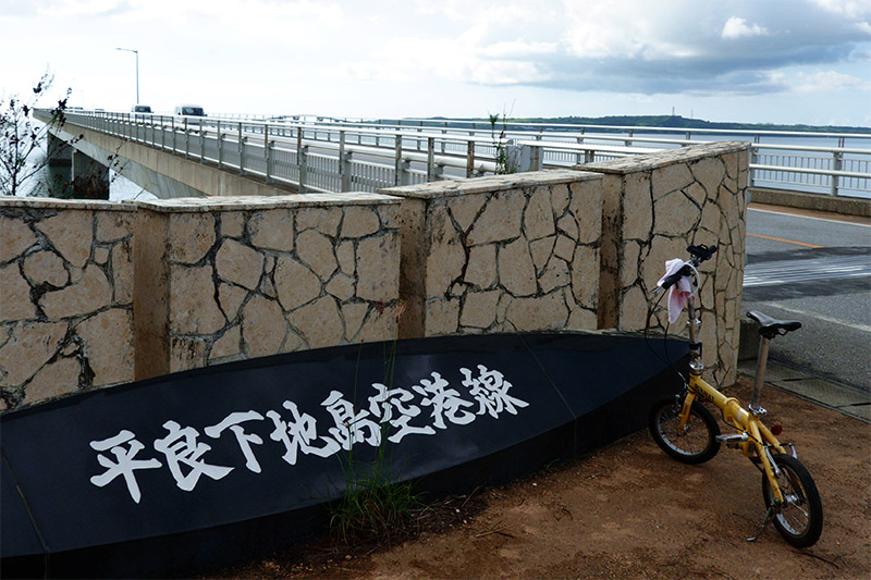 この橋に来る直前に電話が鳴った。気付くのも遅れ下り坂で急にも止まれず、出られなかったのだが、知らない番号である。でも宮古島っぽい番号。恐る恐るかけ返してみると、これから向かう宿のオーナーさんだった。お客さんを下地島の空港に迎えに行くので、30分強留守にしますが、今どのあたりですか?とのこと。自転車で向かっていますと言ったら、ぶったまげられた。なんか感じのいい声でちょっと安心。