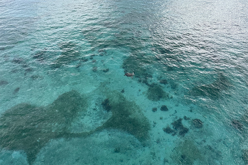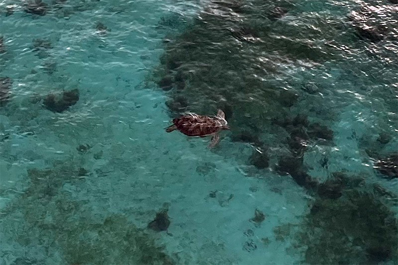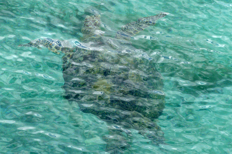 ■おおおおおおおおお!ウミガメではないか。いきなり登場かよ。ちょっといきなりすぎてiPhoneでしか撮れなかった。なのでこれは大拡大。