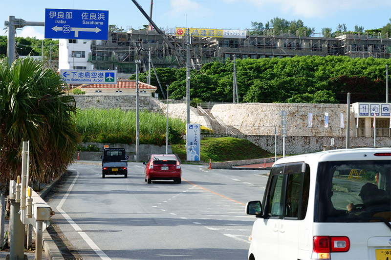 ■伊良部島上陸!海の駅があった。マンション作っている。目指す宿は左に曲がる。後日右にも曲がってみた。