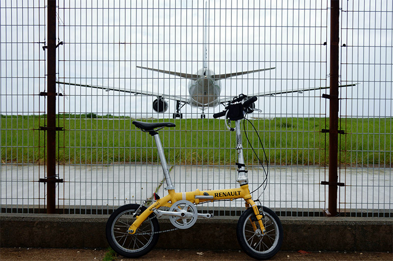 ■自転車と記念写真。飛行機からはアイドリングの「シャー――」っていう音が良く聞こえるぞ。さすが真後ろ。
