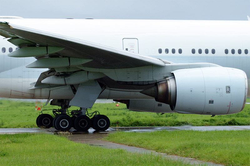 ■佐和田の浜から17ENDを見たらまだ駐機していたキャセイ機。雨なのでかすんでいる。もうだめだな・・・