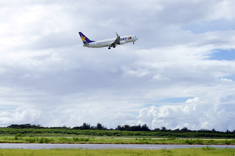 ■この場所で写真撮ってたら、ゴーと音がした。そしてスカイマークがやってきた。とりあえず撮っておくか。気合入っていたならば、脚立持ってきて水煙なんかがいい感じで撮れただろう。
