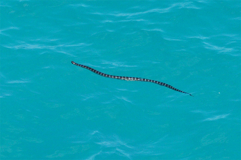■で、一番びっくりしたのがこれ。ウミヘビなのかウミヘビっぽい魚なのか? 後で聞いたところによると、ウミヘビらしい。ウミヘビもウミガメ同様、息を吸うために数分に一度海面にでてくるんだって。