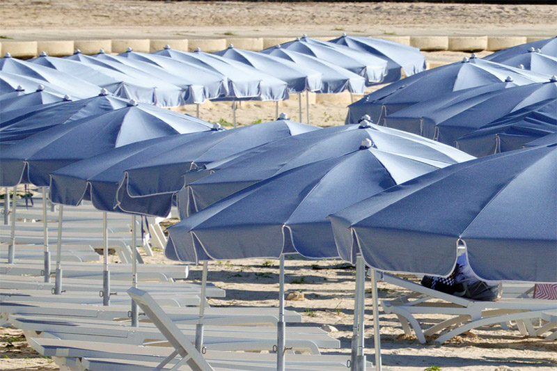 ■ビーチにはパラソルがたくさん。いつも思うのだが、これって無料なの?有料なの?(ググったら大体にして有料だそうな、このヒルトン宮古島前も監視員に払うらしい)