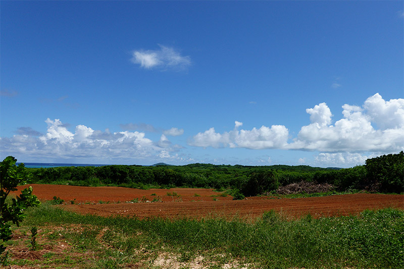 ■左を見ると畑が見えた。地面が赤いなぁ。