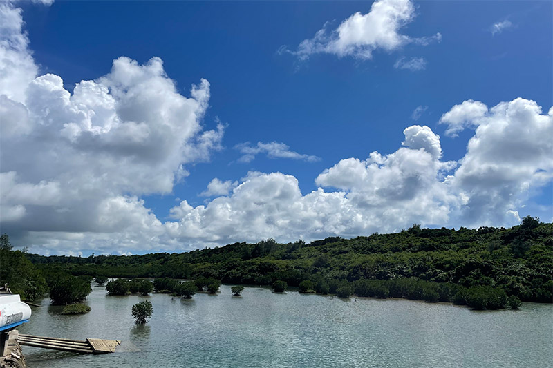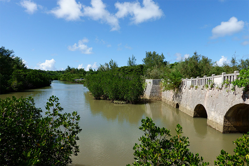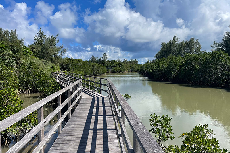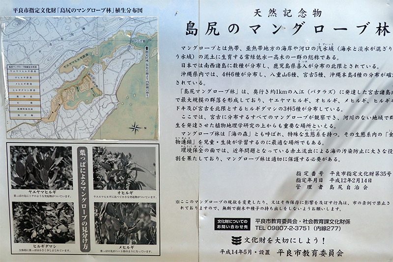 橋を少し過ぎると「マングローブの林」っていう看板があった。疲れていたのでそのまま進んだら「マングローブの林」出口見たな看板があった。うむ、せっかく来たのだから、見れるものは見てみようと入口に戻った。西平安名崎とは違う論理が働いが、西平安名崎には坂の上り下りがあり、それを嫌ったというのが真実である。