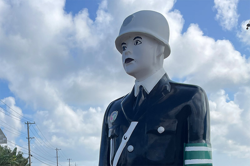 ■という交差点についたら「まもる君」がいた。ここのまもる君は「てつや君」という名前らしい。まもる君マップは
