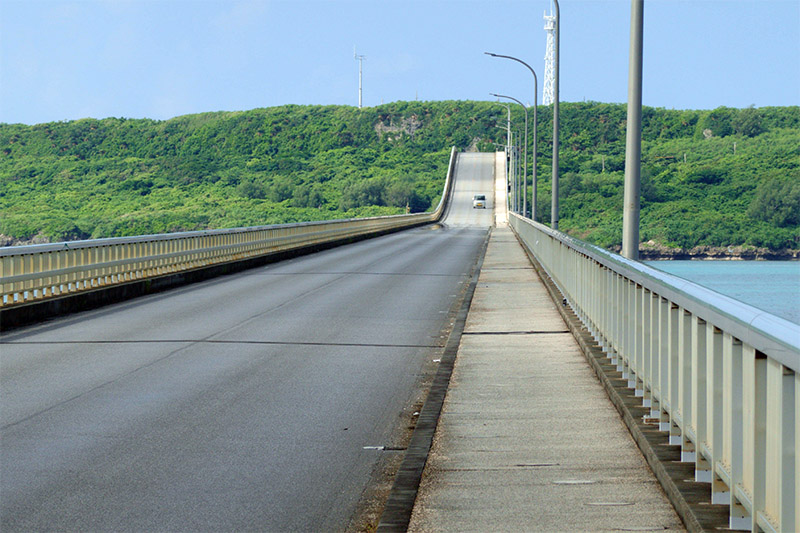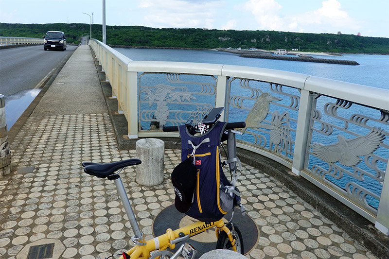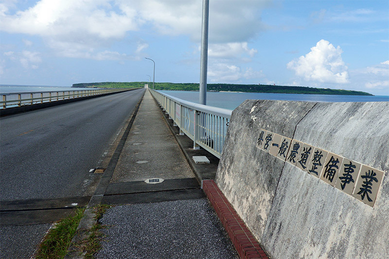 ■いよいよ来ました、来間大橋。この橋も北側の片側にしか歩道がないのだ。