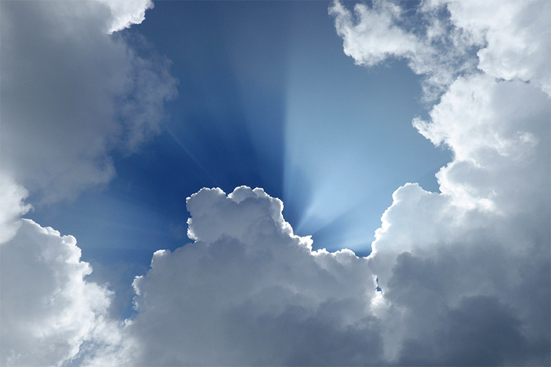 ■おっ、雲のすき間から太陽光が差し込んできた。