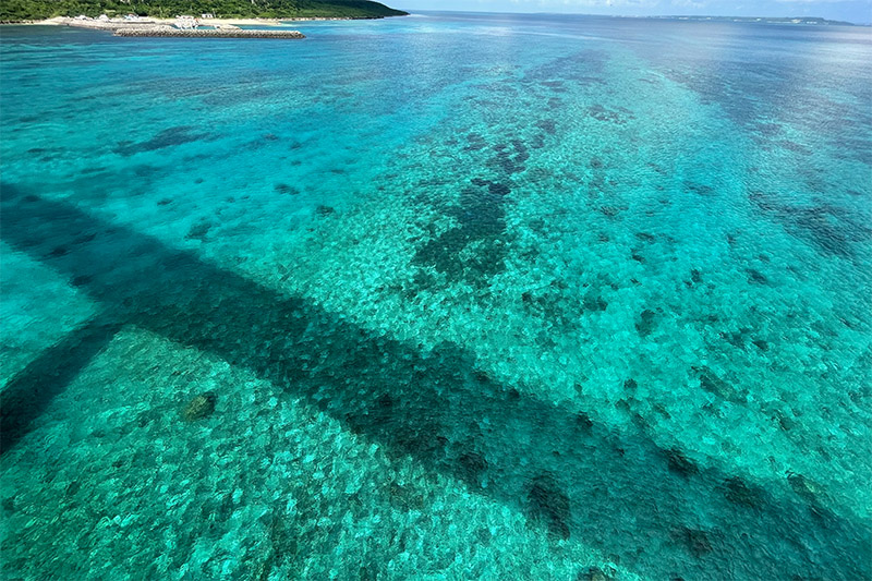 ■太陽が見えると海の色が一気に映える。これだよこれ!なマリンブルー。ちょうど潮が引いている時間みたいで、それも映えに貢献している。
