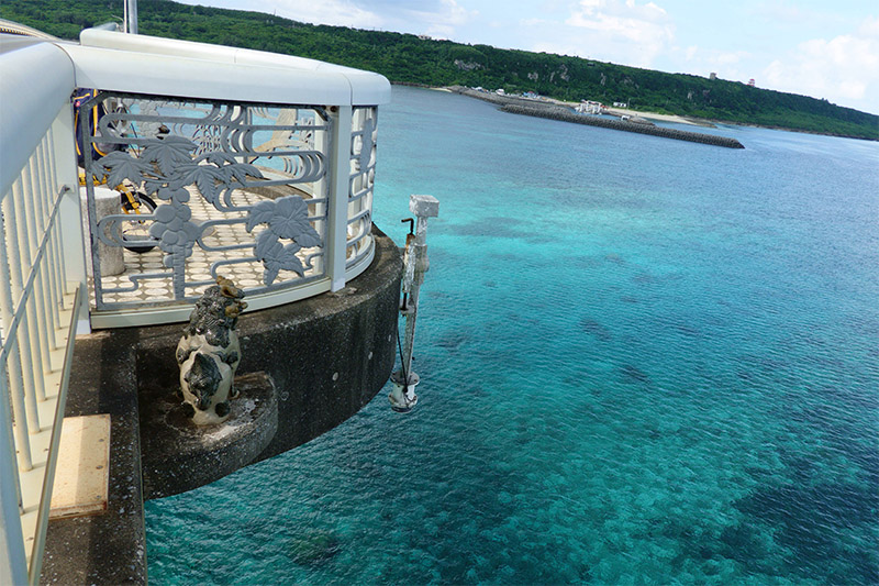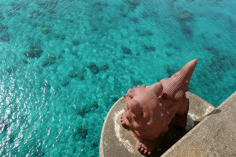 さて、そろそろ島に上陸するかな? と自転車に戻って少し居場所を変えてみたら・・・なんと、ここにシーサがいるではないか。全然気が付かなかったよ。