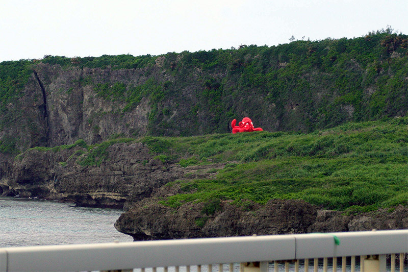 ■さて島上陸すぐのところで、左側に見えたのが「タコ公園」のタコ。赤いんで目立つ目立つ。景観とアンマッチだね。