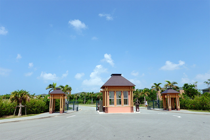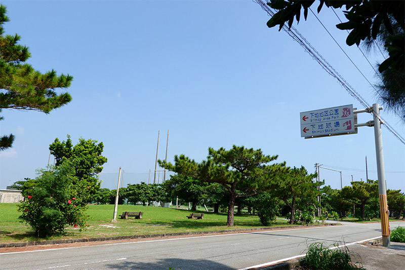 ■さて、とりあえず目的とした来間島を制覇したあと、予定は特に考えていなかった。橋を渡り終えて東に行くと有名なリゾートエリアである「シギラビーチ」がある。まあ行けるところまで行ってみよう。なんだかちょっと立派な運動公園があった。当然暑くて人がいない。。
