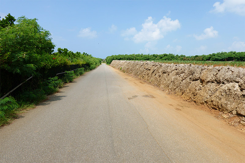 この辺りを右に曲がるとすぐムスヌン浜や長間浜ってのに出られるらしい。しかし、旅も後半、暑さでだいぶ疲れていたってこともあって、「浜に出る=下って帰りは超上り」ってのにトライできなかった。