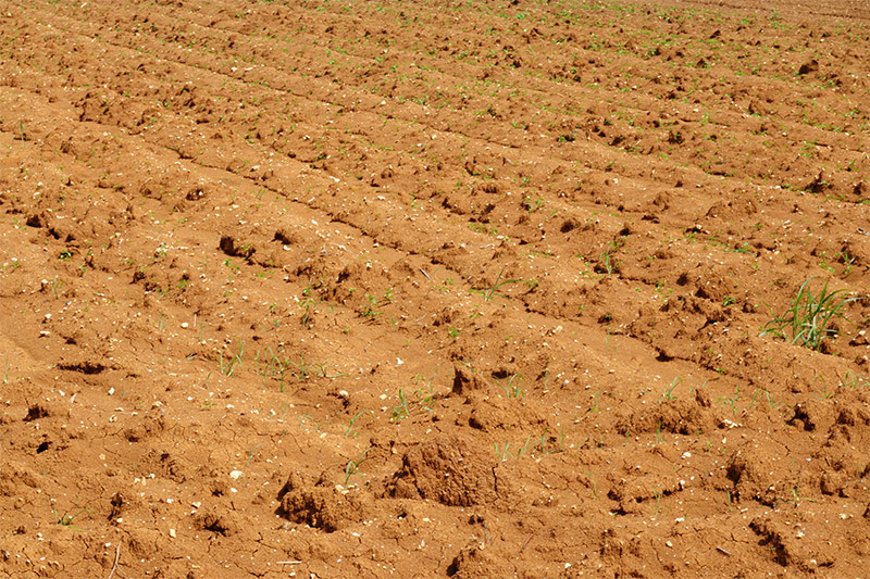 ■左を見ると赤茶色の土。遠くにポツンと見えるのは・・・