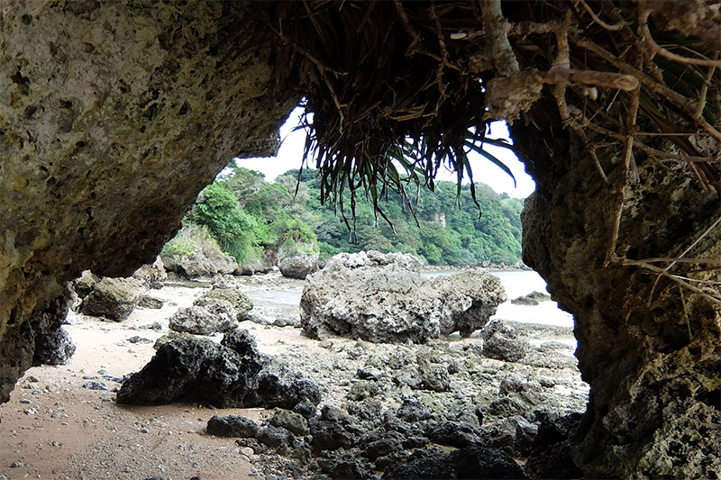 浜の端には岩がたくさんある。無人島探検のようである。でも正直言うと、誰ものいない浜のゴロゴロ岩があるところを歩くと、少し怖くもある。地震が来たら誰も気が付かないだろうし。