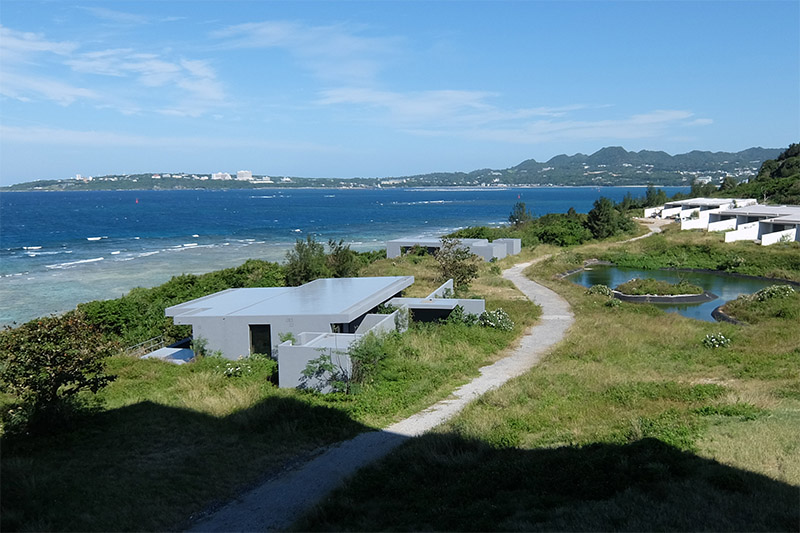 ■90度折れたところのベランダ。本島が見える。別の人の話だとここには違うホテルがあった?建つ予定だった?らしく、その名残の建物がポツンポツンとあったりするのだ。ヒルトンなんて、そのあたりは早く処理してきれいな庭園にしてほしいね。