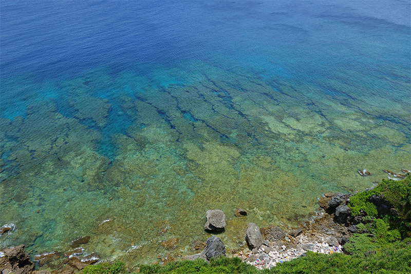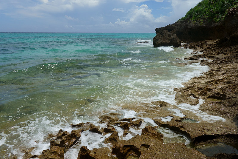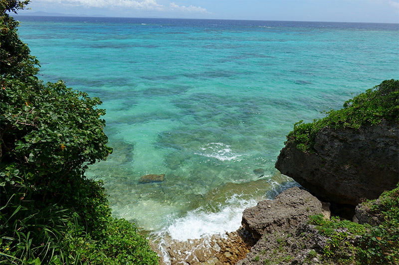 ■「絶景」ともらった地図に書いてあった「湧出」に着いた。何がいいかって、東家があって日影があることだね。沖縄の島の法則で北側は断崖である。