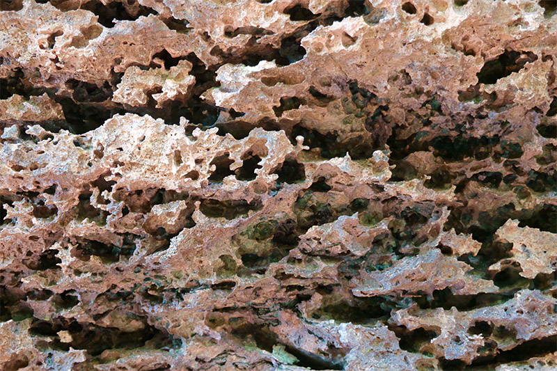 ■内部の壁をアップで撮るとこんな風に、空洞だらけの岩である。これがサンゴなのだな。