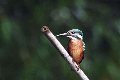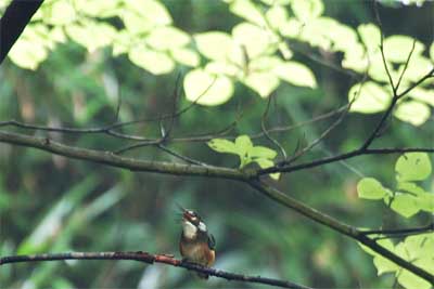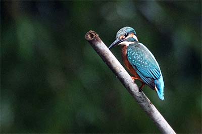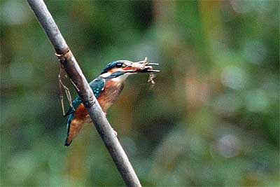◆一番奥の池で誰かが差し込んだ竹の棒にとまっています。暗いのですが何とかぎりぎりで写りました。ここはザリガニのメッカですから、やっぱりザリガニ食らいなです。