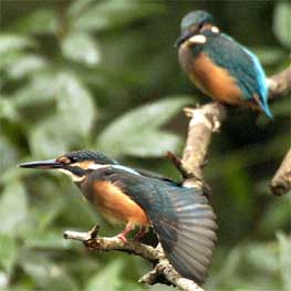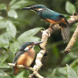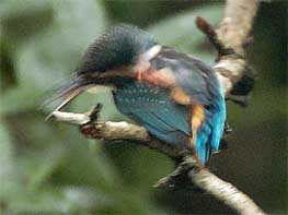前日のよさに誘われて小雨が降っているにもかかわらず出陣しました。小雨だとやっぱり誰もやってこないのですね。すご〜く暗いのですが、3羽のカワセミが戯れておりニンマリです