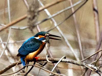 ◆まだ新緑が無くて茶色の世界だと、カワセミブルーがよく映えるのです。
