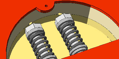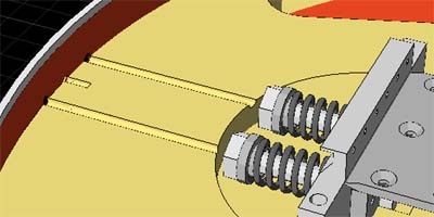 フローティングアームのテンションは、一般的なシンクロナイズド・トレモロ(ストラト)の場合、ボディー裏のスプリング数で調整する。レッドスペシャルの場合は、スプリングを抑えているボルト(パンサーのバルブスプリングね)を締めて調整する。つまりボルトを回せなければ調整が出来ないのである。当初スプリング力の調整は六角ボルトの頭をラジオペンチとかでまわすのかなぁ?と思っていた。が、このアクセスホールの存在を見つけてから、長いツールをこの孔から差込み、ボルトの頭(十字かマイナスか六角レンチかは分からない)を回すということが分かった。これはいかにも工学的なやり方で、「ブライアンだなぁ」と関心したのだった。