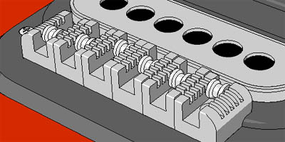 レッドスペシャルのブリッジはちょっと変わっている。ブリッジ自体は各弦専用の「駒」構造になっていて、ボディーに直接タッピングスクリューで締結されている。そしてこのブリッジは、いわゆる「ローラーブリッジ」であり、アーム操作で弦がブリッジに引っかからないようになっている。このブリッジ駒には5本のローラー用溝が切られていて、オクターブ調整はそこの場所を入れ替えて行う。このローラーは弦で押さえつけられているだけの構造であり、演奏状態で弦が切れると大変だ(ローラーが散らばってしまう)。