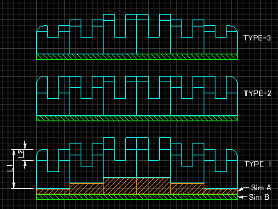 | タイプ1 | 駒ごとのシム(B)で調整 | 全駒にかかるシム(A)で調整 | 各駒のL1/L2は同じ(駒の高さ関係はすべて同じ)で作りやすそう |
