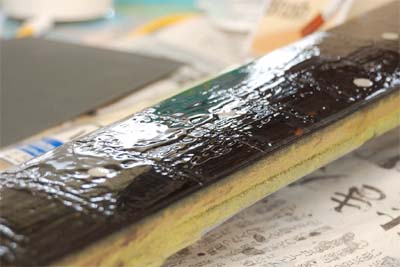 もう何度指板にペーパーをかけたか思い出せない。永遠にペーパーがけをしているようだ。もう完成しないのではないか?と超弱気になっていた。そして「もうここまできたら基本に忠実に回り道するだけしよう」と心に誓った。そこでまず下地をちゃんと作ることが重要だという結論に至った。