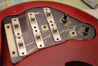 Burnsのペグはグローバー製である。もともとペグは詳しくない。なので、レッドスペシャルのキャラクターにもなっている、白い安っぽいペグノブを再現してみることにした。