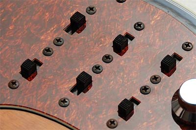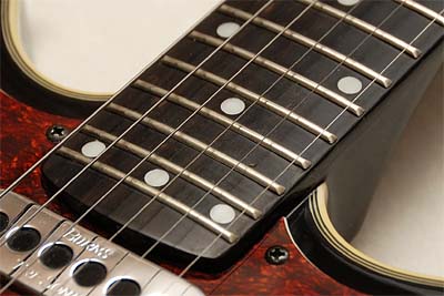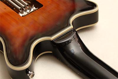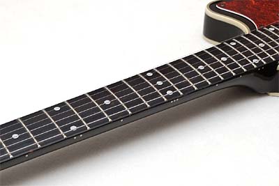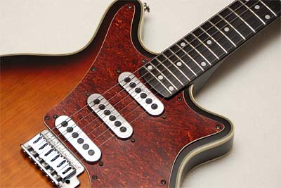 なんてったって持った瞬間の印象が強かった。「軽っ!」と「ネック太っ!」である。軽いのはやっぱりセミフォローボディーっていうのがありそうだ。ボディーを叩いてみるとやっぱり空洞がありそうだ。またネックが太いのとあわせて、1弦と6弦が異様にネック幅エッジに近い。ちょっと弦をベンドするとフレット落ちしそうだ。各PUのON/OFF、位相が選べる6スイッチは今どのモードにいるのかがさっぱり分からない。ライブでブライアンを見ていると、スイッチとボリュームを頻繁に動かしているが、さすがに学者ギタリストだなぁ。
