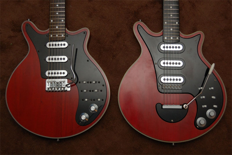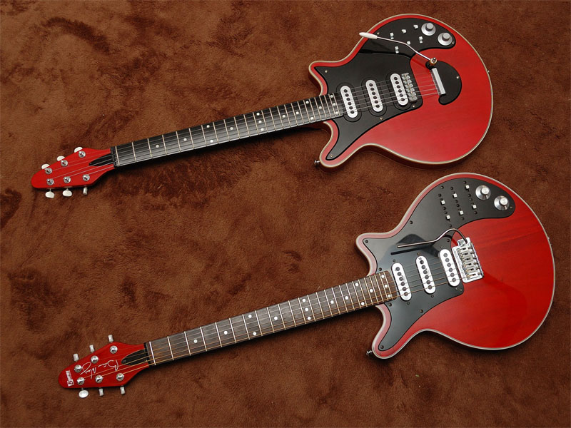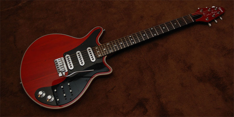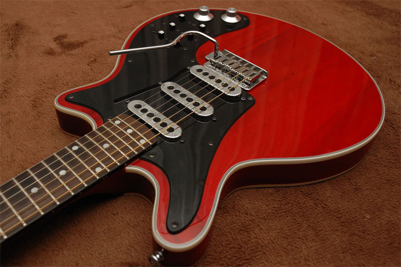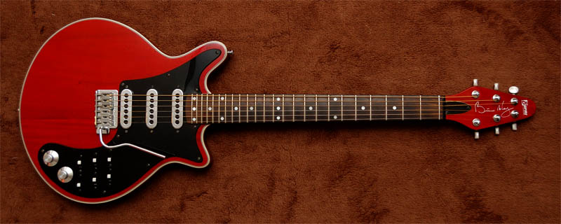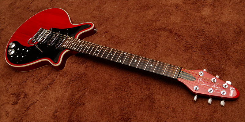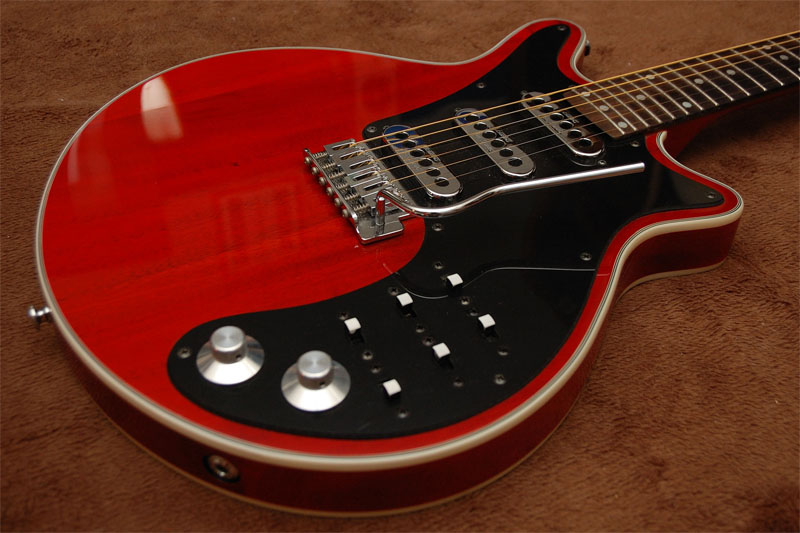 そんなこんなしていたある日、会社の昼休みにヤフオクを見ていたら出ていたのがこのレッドスペシャルである。どうやらBurnsがレッドスペシャルを作るときのプロトタイプ品らしい。ペグは白いものに変えられている。SWも白だ。VOLノブはアルミ製に換えられている。それなりに手が入れられている。さらにデジテックのブライアンメイシミュレーターもおまけでついていた。まあいいでしょ、と、昼休みが終わる30秒前に「この価格で落札」という一発落札した。