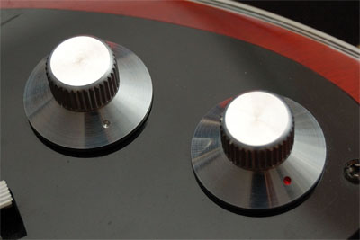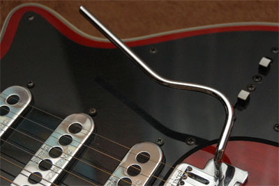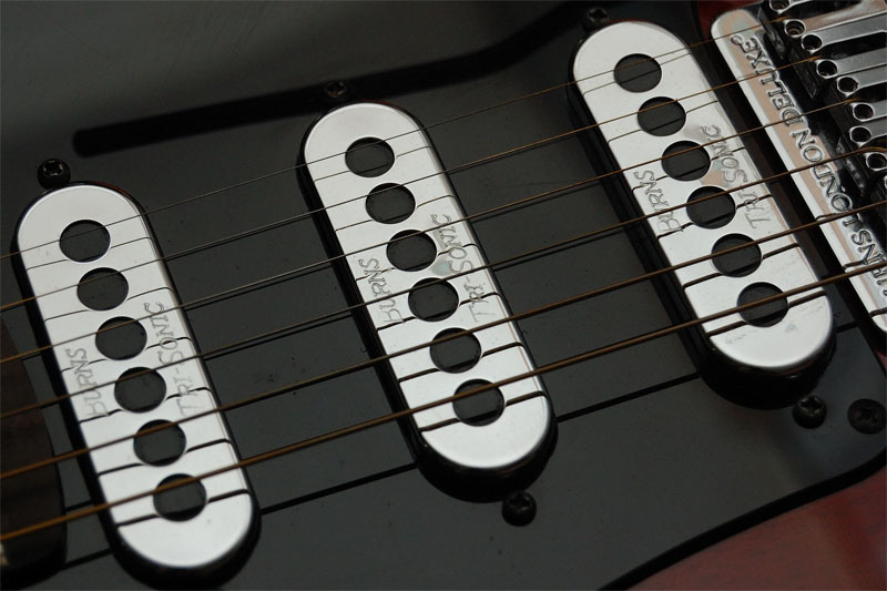 ということでヤフオクだ。ある日4万円以下でオレンジっぽいカラーのレッドスペシャルが出ていた。人気がなく何度も落札流れしている。オレンジっぽい赤は、Burnsのオリジナルレッドより断然レッドスペシャルらしい。心が動くのだが、それを思いとどめるのは「ゴールド」のメッキパーツなのである。レッドスペシャルのトレードマークともいえるトライソニックのメッキしたPUケースがゴールドじゃぁ話にならない。