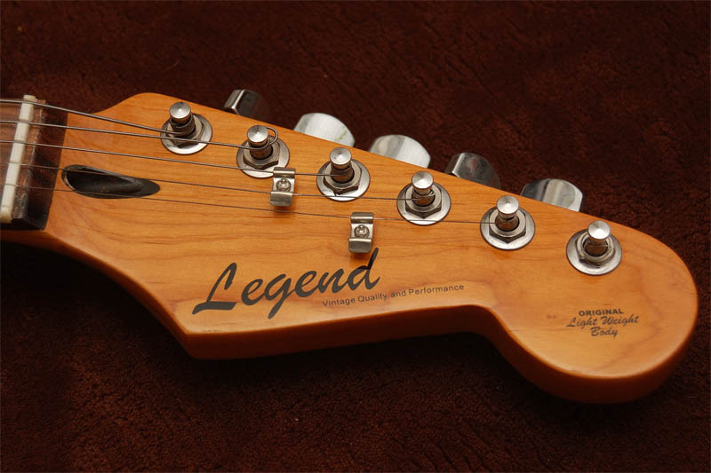 しかしこのネックで残念なことがひとつ。ストリングスガイドが1-2弦用と3-4弦用の二つついているが、これがあまりにもネックヘッド上部についている。これは格好悪い。また普通ペグの表側には平ワッシャーがついているが、Legendの場合径が大きなテーバー上のワッシャーがついている。これもちょっと違和感あり。