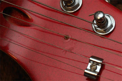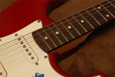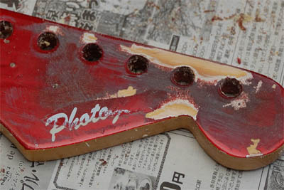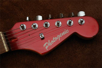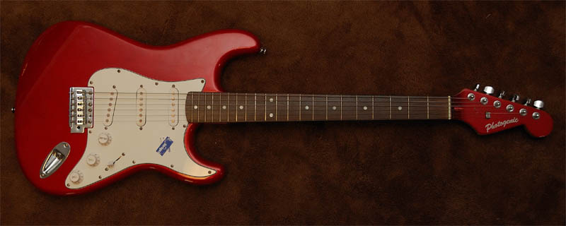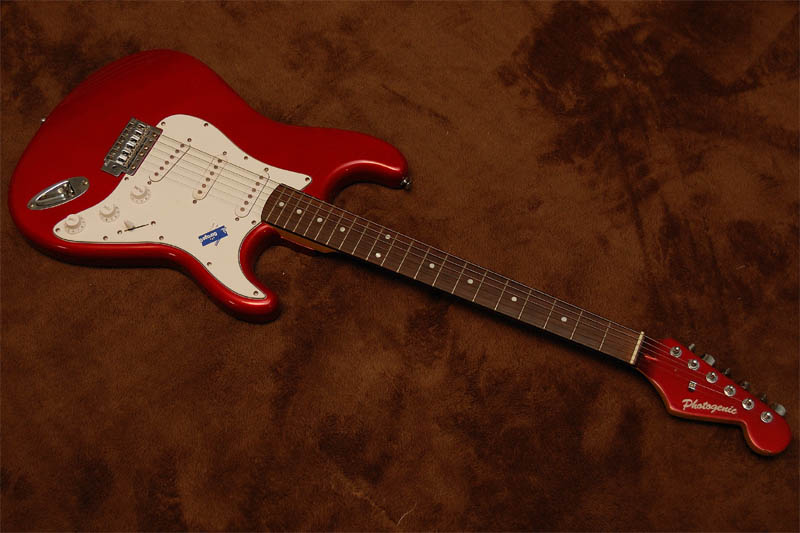 Fernandesを仕入れて勢いが付いてしまった我が家(というか私だけど付き合わされる家族はいい迷惑?)は次なるハードオフへ足を伸ばしたのだった。そしてジャンクコーナーで見つけたのがこのPhotogenicである。メタリックレッドでヘッドにまで色が付いているっていう、私の嗜好としてはあまりお勧めできるものでは無かった。だがジャンクギターバブル絶頂のその頃、3150円なんてプラモより安いじゃん、であって、即ゲットである。