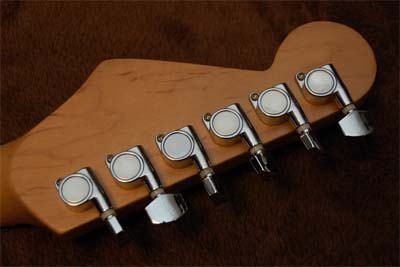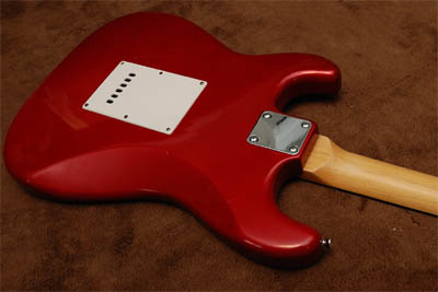 いつものジャンクギターだと、PUの座グリやリアのトレモロスプリングの加工が泣いちゃうくらいに汚いのである。「見えなきゃいいじゃん」とまあ確かにそうなのであるが、見ちゃったらげんなりである。それに比べこのギターは良心を感じる。まっすぐなラインはちゃんとまっすぐなのだ。