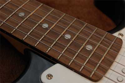 外見は何の問題も無い。ネックに見えるバーズアイ状の模様が結構いい感じである。これが3150円なら買いである。
