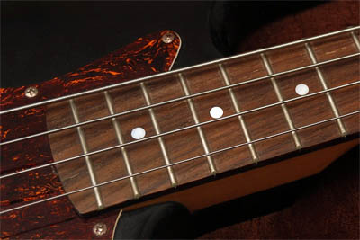 ってこともあって、ラップ塗装ができる黒ベースのジャズベを物色しに行ったら、中古2割引きで出会ったのがこれ。べっ甲調のビックガードがお気に入りだったが、実はこれがその後物議を醸すことになった。