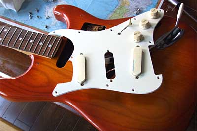 狙ったのはフェンダージャパンの中上級モデルであるSTR-850LSである。楽器屋は町田のタハラ。商品券を握り締め、「これ下さい」と男らしく悩まず「ドン!」ってな具合で店員さんへ声をかけた。まあ実際はここに来るまで散々あれこれ思案したのは内緒なのである。そして店員さんはおもむろに飾ってあるギターを梱包っていうかソフトケースにつめ始めた。あれ?新品があるんじゃないの?と思ったが、太っ腹を装い、何気ない風を装った。ところでギターって展示品を買うのって当たり前なのか?まあ木製品なので、その木目の美しさとかを納得して買うなら現品が一番なのだろうけど・・・