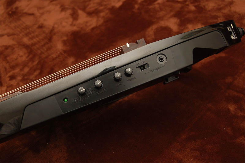 弾いてみる。ん?ちょっと違和感がある。ボディー表面に腕が置けないのに慣れない感じ。前のオーナーもこれを解消するためにへんな追加工を施したのかもしれないと悟った。ネットで見ると、ヘッドホンなどライン出力のクオリティーが高いらしい。さすがヤマハだ。この辺は後々インプレッションしてみよう。