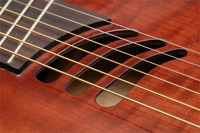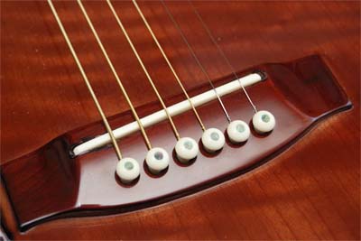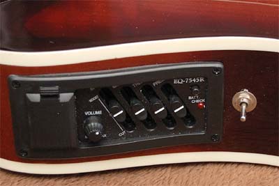 はっきり言って、微妙〜である。まずペグが安っぽい。スチール弦のペグはボックス型で一昔前の安物ギターレベルである(今の安物ギターはちゃんとグローバータイプのペグになってるのだ)。ナットも頼りない感じ。フレットはすり合わせなどされていなく、チョーキングしてみるとザラザラとした嫌な感触だ。