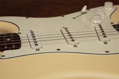 でも赤いギターを赤いまま持っている気にもなれず、じゃあどうしようと数秒思案したあげく決めたのは「ジェフベック」である。以前から白のストラトが欲しかったが、純白の白はちょっと安っぽい。なのでクリーム(アイボリー)ホワイトとした。これが、最近のジェフベックのストラトと同じ色なのである。