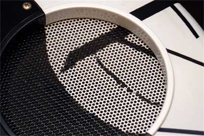 さてZO-3の場合、ボディー前面にスピーカーの黒の金属ネットが貼られている。おお、黒か。ということで、今回はこの黒部分も全体デザインの中に取り込むことにした。ピックガードが黒なので、その部分をマスキングして、ボディー白部分をスプレーする。しかし勢いスプレーするとネットの小孔が埋まってしまう。なので、ここでは1/43のホワイトメタルモデル作成でも活躍している、ソフト99のホワイトサーフェーサーを利用した。このスプレーは粒子が細かくて細かいところのスプレーに最適である。実は最初にドバッと吹いて小孔が埋まってそれをとると塗装がはがれて、全部はがすにえらく手間取ったのだった。諸君はソフト99で吹くのだぞ!